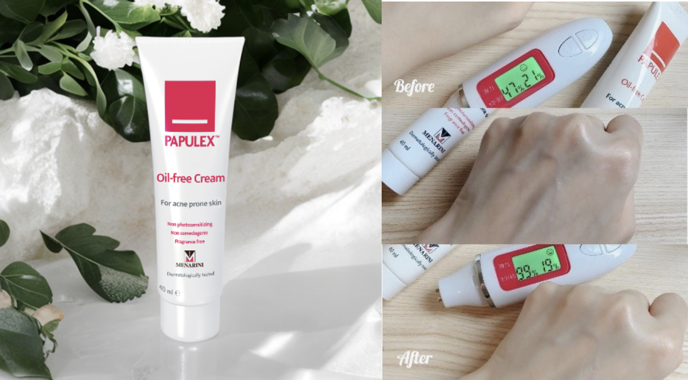 小編私家貼士: PAPULEX OIL FREE CREAM 幫助皮膚控油又同時補濕, 皮膚分析儀器顯示皮膚水嫩度大大提升。就算不是暗瘡肌,春夏季節也可以在妝前於全面或T-ZONE位置使用Papulex 控油修護霜來打底,讓底妝更持久貼服。